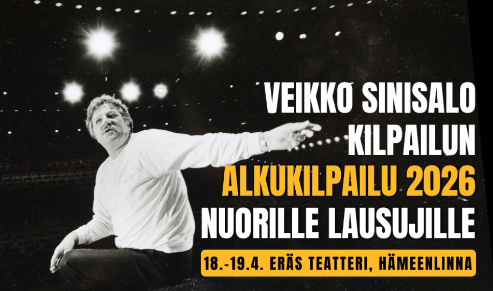 Veikko Sinisalo-kilpailun alkukilpailu nuorille lausujille järjestetään 18.-19.4.2026 Eräs Teatterissa